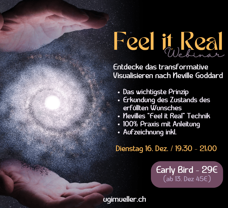Webinar: Feel it Real - Transformatives Visualisieren nach Neville Goddard - Di. 16. Dez um 19.30 - 21.00 - Mehr dazu